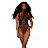 Teddy sexy Mapalé en résille noire transparente avec broderie de roses,...