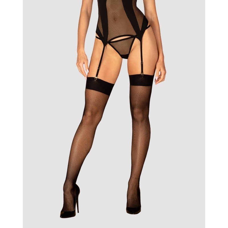Les designs minimalistes vous plaisent-ils? Jetez un coup d’œil à ces bas et voyez que moins c’est plus! La maille transparente mettra en valeur la beauté de vos jambes, et les passepoils noirs étreindront doucement vos cuisses. Combinez ce design avec votre porte-jarretelles préféré et impressionnez où et quand vous voulez.