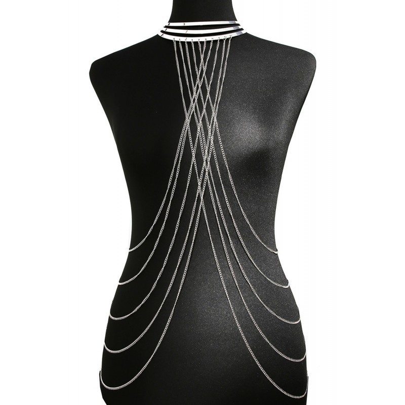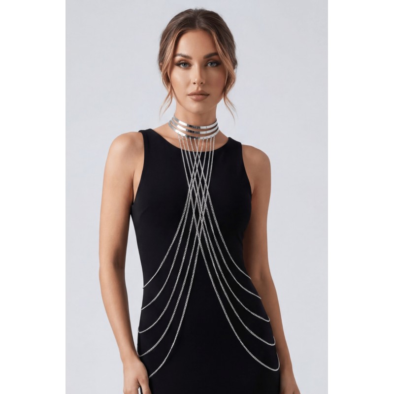 Sublimez votre corps avec cette magnifique Chaine de Corps effet argenté avec large cou argenté, surmonté de 3 anneaux. Ce bijou de corps est à porter sur une robe ou un top noir pour faire sublimer l'ensemble ou simplement sur votre corps nu. La marque BE LILY Accessoires va sublimer votre silhouette.