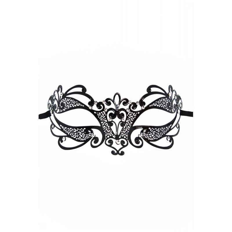 Masque vénitien Gaia rigide noir avec strass . Attache par liens. Un masque vénitien haut de gamme pour vos soirées déguisées ou sensuelles