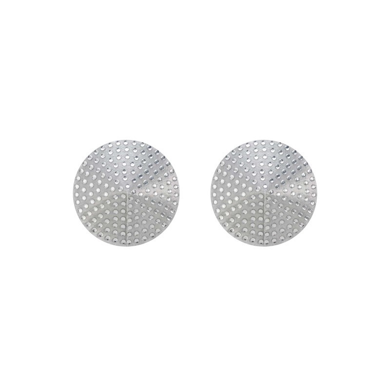 Cache-tétons en argent, ornés de cristaux réfléchissant la lumière pour un éclat fascinant. Légers et confortables, ils sont parfaits pour une confiance en peau nue ou un coiffage à l’œil nu.