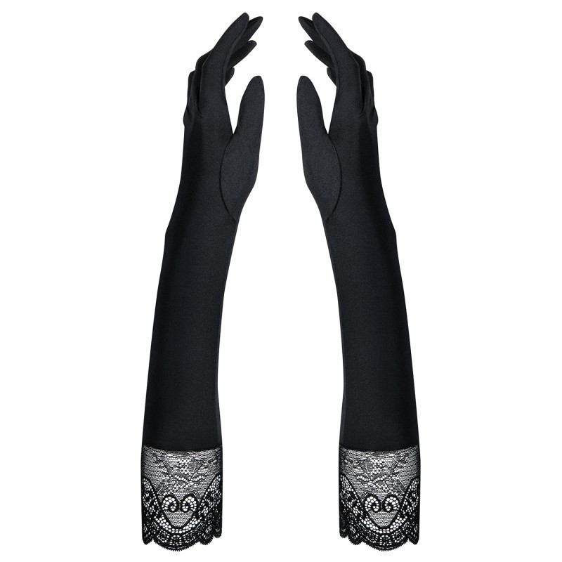 Voici des gants longs qui se porteront aussi bien avec de la lingerie qu'avec une tenue de cérémonie. Ces gants sexy de satin sont terminés par de la fine dentelle et sont décorés de pierres brillants. La composition de ces gants longs sexy Obsessive est de 85% polyamide et 15% elasthane.