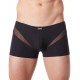 Vous aimez le confort et la séduction . Ce boxer sexy noir est assez glamour dans sa coupe confortable et très agréable de part sa douceur. La séduction est également présente pour ce boxer noir sexy avec, devant comme derrière, 2 bandes en V réalisées dans une fine résille toujours aussi efficace.