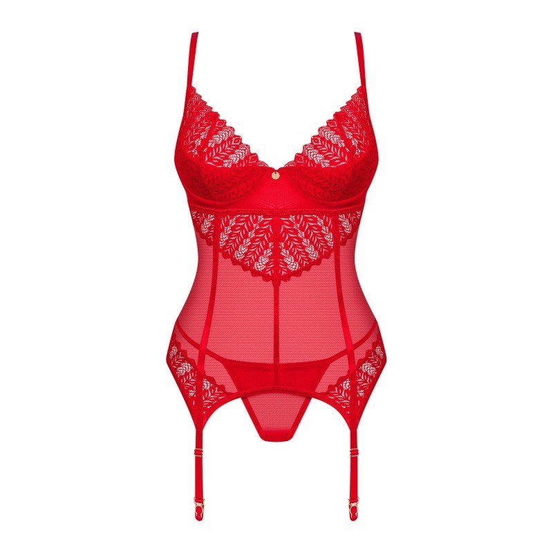 Créez une ambiance passionnée ! Ayez l'air rebelle et éblouissant ! Faites forte impression dans ce corset d'un rouge intense. Le tissu incroyablement souple mettra parfaitement en valeur vos charmes, et les empiècements en dentelle et les porte-jarretelles vous feront vous sentir plus séduisante que jamais. Osez essayer ?