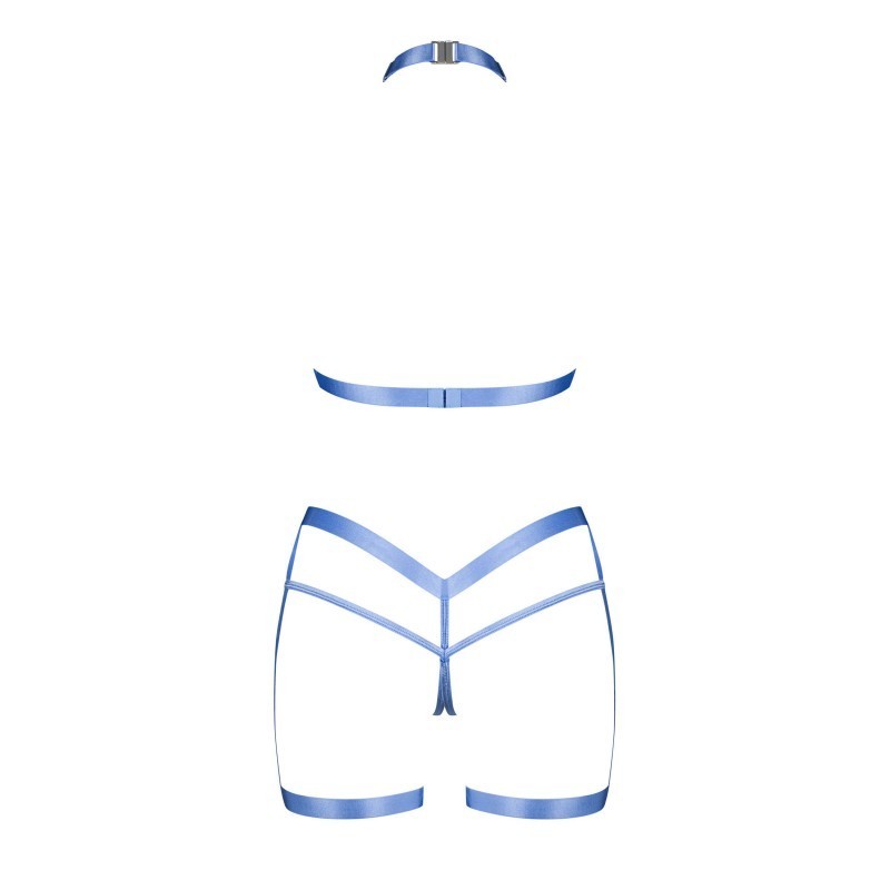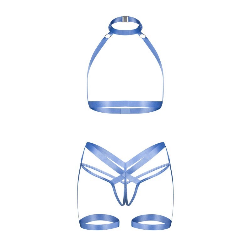 Un ensemble bleu captivant, le harnais 2 pièces Shaderi est doté d’un haut en forme de collier et d’un harnais en forme de lanière. Les accessoires argentés accentuent les bretelles lisses en tissu souple de haute qualité. L’ensemble comprend une fermeture à pression au niveau du cou, un col réglable en circonférence et des crochets au dos pour un ajustement sur mesure.