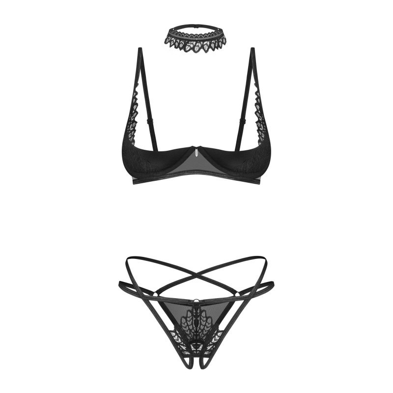 Faites des plans pour les moments intenses de votre relation qui seront impossibles à oublier! Choisissez cet ensemble sexy et faites battre le cœur de votre proche plus vite! Le noir sensuel du tissu lisse combiné avec des détails en dentelle et le design unique sera la source de plaisir sans fin!