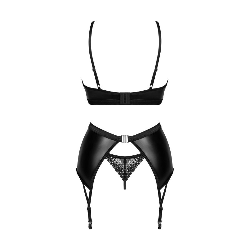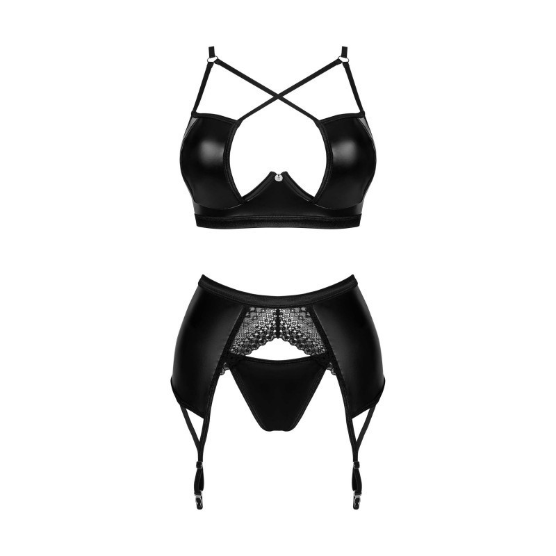 Ensemble Norides 3 pièces Le visage rougi, vous recherchez une lingerie non conventionnelle qui allumera le feu de la passion dans votre chambre ? Cherchez pas plus loin! Choisissez l'extraordinaire ensemble Norides 3 pièces ! Laissez-vous séduire par le noir profond d'un tissu subtilement brillant au fini dentelle et sentez-vous spéciale ! Découvrez plus de détails: - ensemble de lingerie noir contenant un string, un soutien-gorge et un porte-jarretelles - ajustement parfait grâce à la fermeture à plusieurs niveaux et aux bretelles réglables - armatures soulignant parfaitement la poitrine - pendentif brillant – attire le regard - inserts en dentelle combinés de manière intéressante avec un tissu lisse - bas non inclus dans l'ensemble soutien-gorge – 100% polyuréthane porte-jarretelles string – tissu : 100% polyuréthane tissu : 90% polyamide, 10% élasthanne
