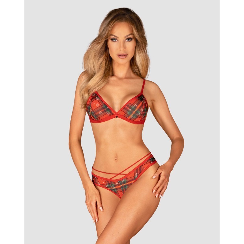 - un ensemble de deux pièces contenant un soutien-gorge et une culotte avec un motif de Noël