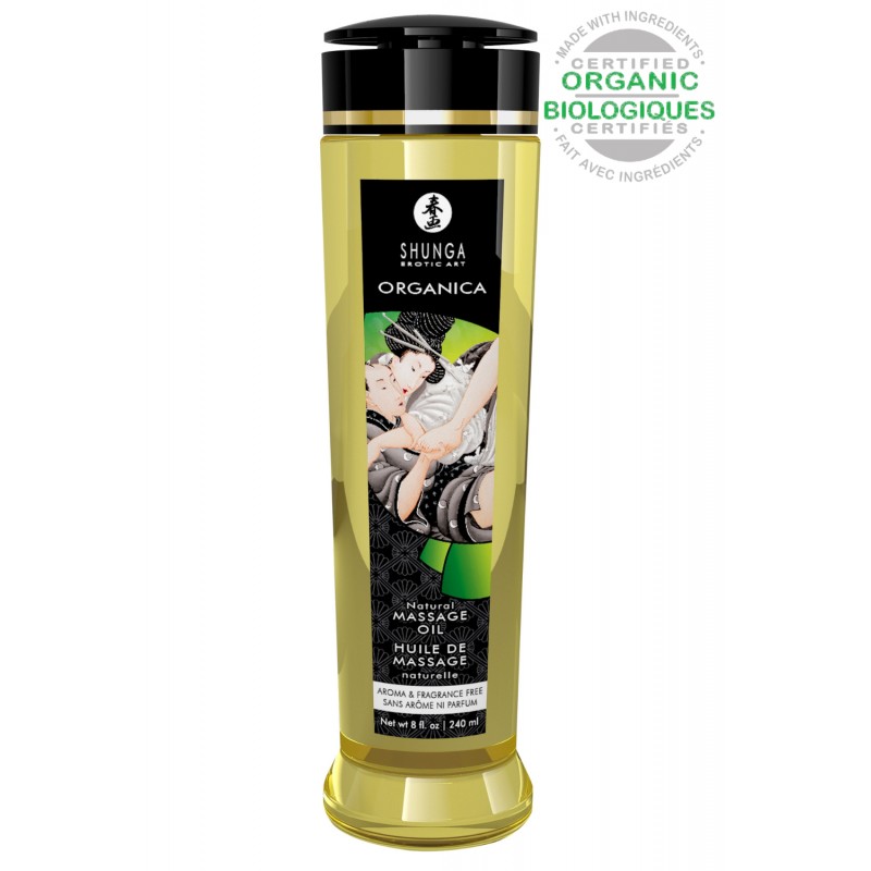 Découvrez la pureté d’une huile de massage 100 % biologique et sans parfum avec la gamme Shunga Organica. Formulée à partir d’huiles végétales pressées à froid et raffinées tournesol, colza, pépin de raisin, avocat, sésame, elle offre une texture soyeuse qui glisse parfaitement sur la peau tout en respectant son équilibre naturel.