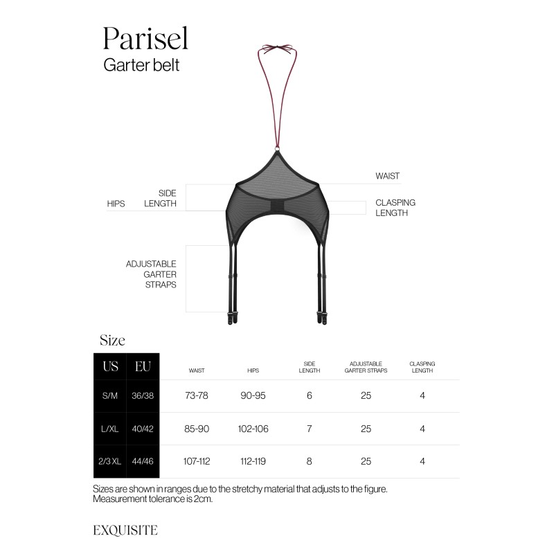 Cette jarretière Parisel incarne la sophistication moderne avec son design transparent et ses tissus élastiques de haute qualité. La ceinture noire élégante comporte des bretelles réglables et une fermeture multi-crochet à l’arrière, assurant un ajustement parfait. La sangle de cou ajoute une touche d’élégance supplémentaire, améliorant le confort et le style.