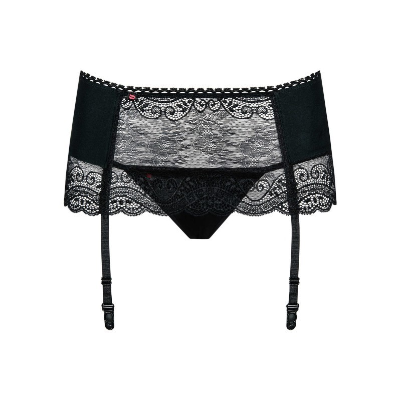 Le charme de ce porte-jarretelles noir est infini. Une qualité remarquable et une parfaite finition pour un élément de lingerie qui restera près du corps. Ce porte-jarretelles sexy est un mélange de tissu opaque et de fine dentelle, la partie des hanches est extensible pour un bel ajustement. Les attaches de ce porte-jarretelles Obsessive sont réglables et il est composé de 85% polyamide 15% elasthane. Avec ce porte-jarretelles vous aurez le plaisir de découvrir un joli string sexy.