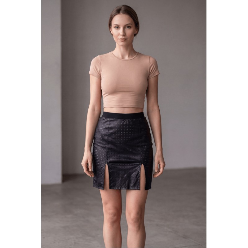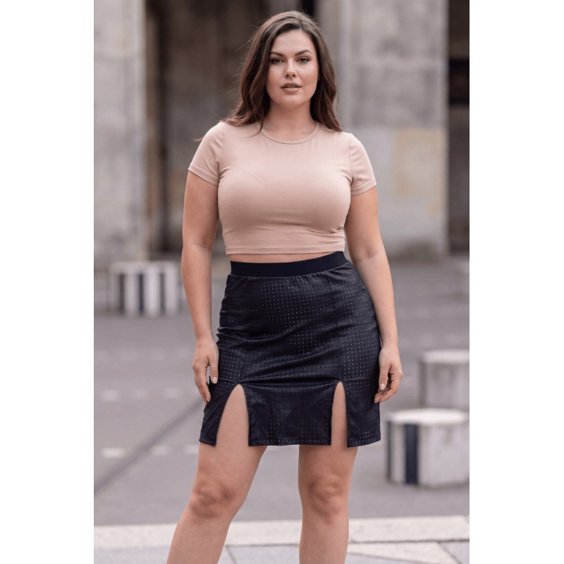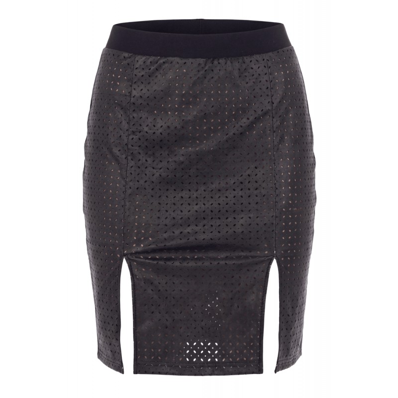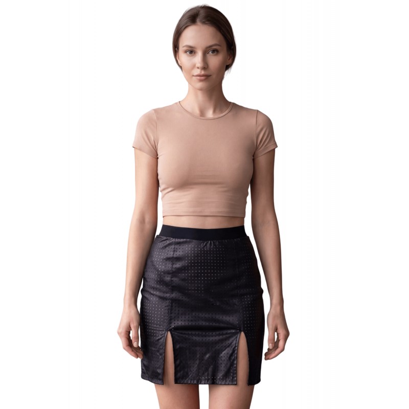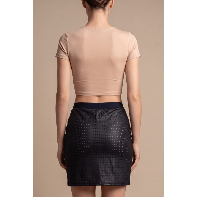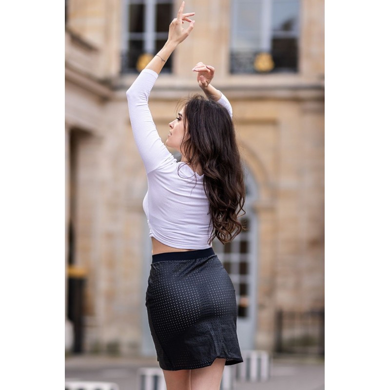 Cette jupe courte en simili cuir blanche, dans une matière élastique pour épouser parfaitement vos formes.