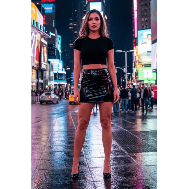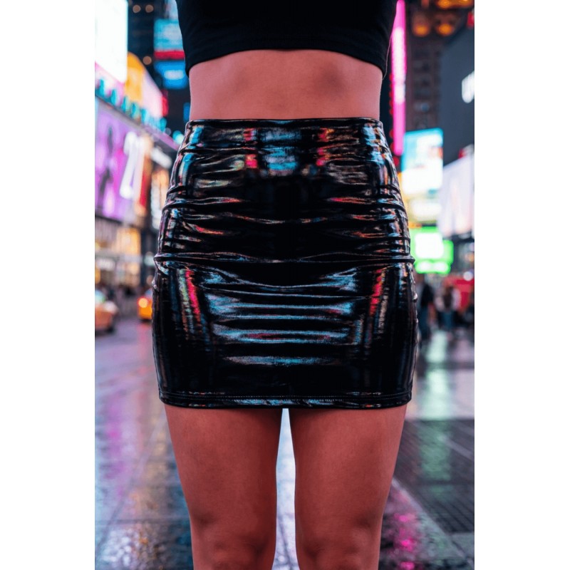 Jupe courte noire Lara en simili cuir brillant, une pièce audacieuse et ultra-sensuelle qui incarne parfaitement l’esprit provocateur et élégant à la fois. Conçue dans une matière effet vinyle, cette jupe offre un look ultra-glossy et sexy, tout en soulignant les courbes avec précision grâce à sa coupe moulante et flatteuse.