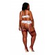 Soutien-gorge Demi-seins grande taille, en fine dentelle extensible blanche. Soutien-gorge à bonnets ouverts à armatures. Bretelles réglables fermeture à crochet dans le dos.