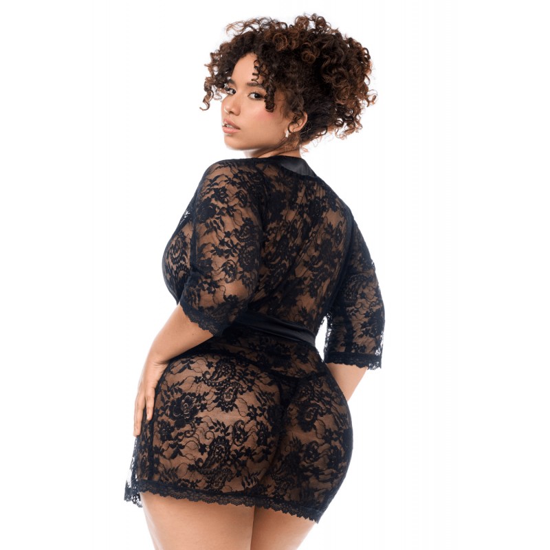 Un incontournable de toute collection de lingerie, ce peignoir en dentelle signé Mapalé allie élégance naturelle et sensualité raffinée. Conçu en dentelle délicate, il est sublimé par de douces bordures en satin et un lien de taille réglable qui épouse la silhouette avec confort et charme.