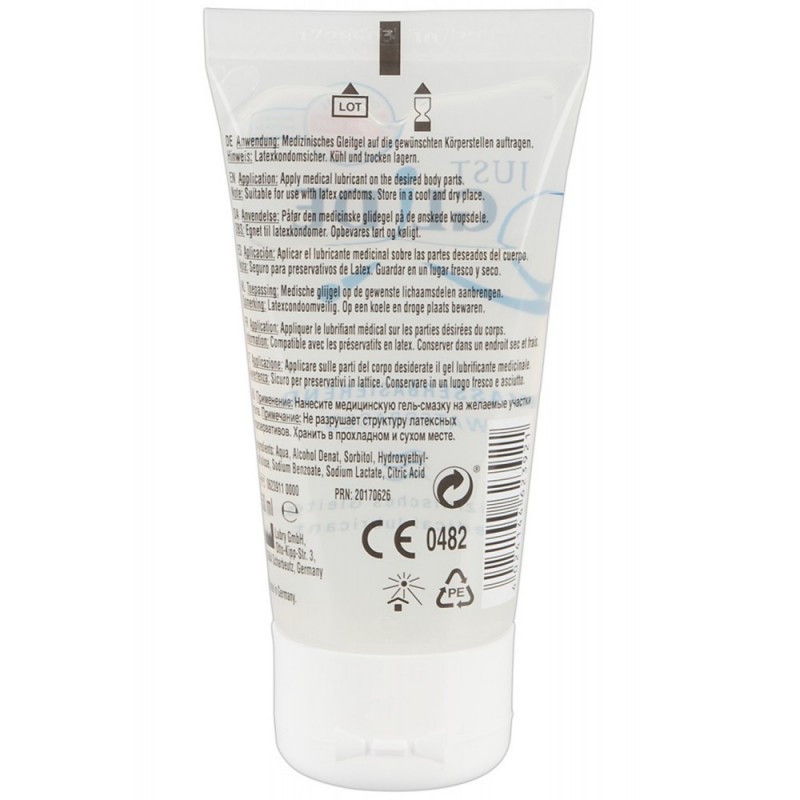 Lubrifiant médical à base d'eau. 100% végétarien. Sans huile, ni graisse. Lavable. Adapté aux préservatifs en latex. Sans goût, ni odeur