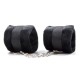 Menottes en fourrure noir avec chainette métal argenté amovible, douce pour des jeux érotiques.