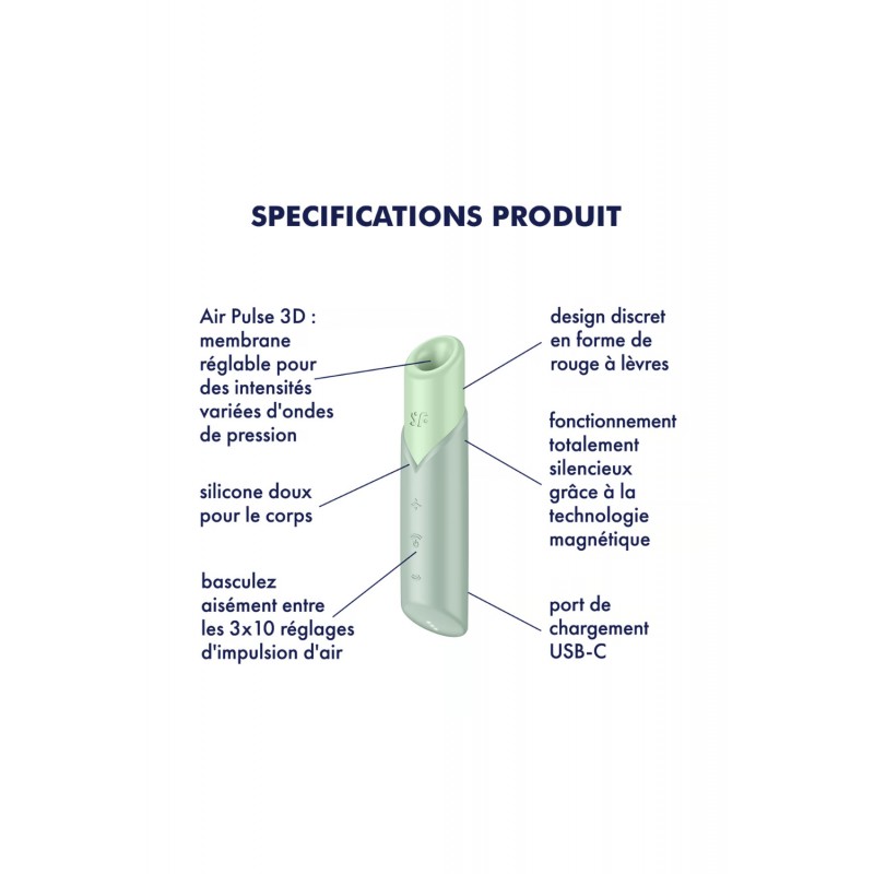 Ce stimulateur à ondes de pression sans contact vous offre 30 combinaisons de plaisir grâce à ses 3 positions de membrane et 10 niveaux d’intensité par position. Rapprochez la membrane de l’ouverture pour intensifier les sensations : 3 LED frontales indiquent clairement la position sélectionnée pour un contrôle optimal.