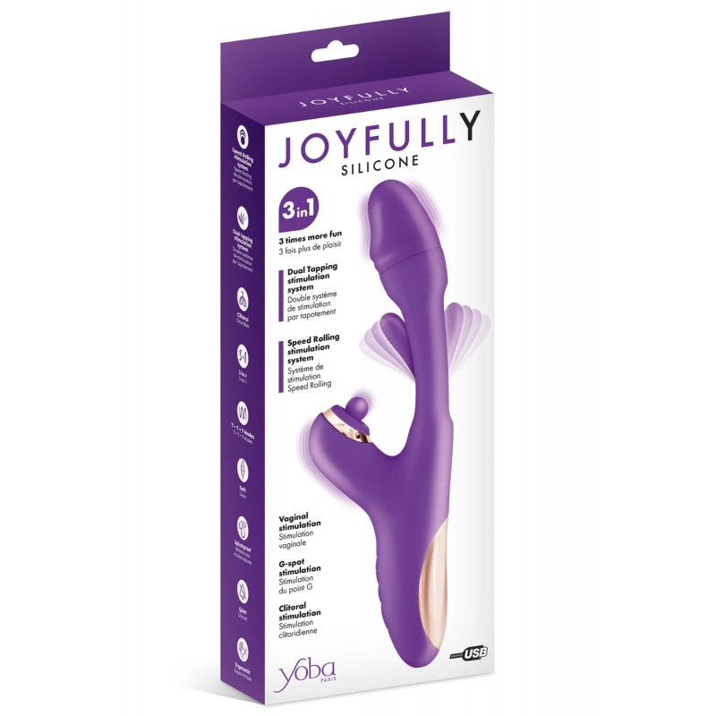 Le Joyfully vibromasseur rabbit 3-en-1 de Yoba est un sextoy innovant. Sa conception ergonomique combine trois stimulations complémentaires dans un seul produit :