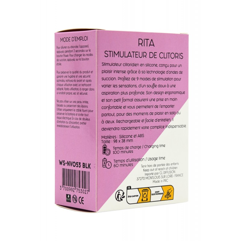 Son design ergonomique et son format compact assurent une prise en main confortable et discrète, idéale pour des moments de plaisir en solo ou à deux. Rechargeable et facile d’entretien, RITA deviendra rapidement votre complice bien-être.