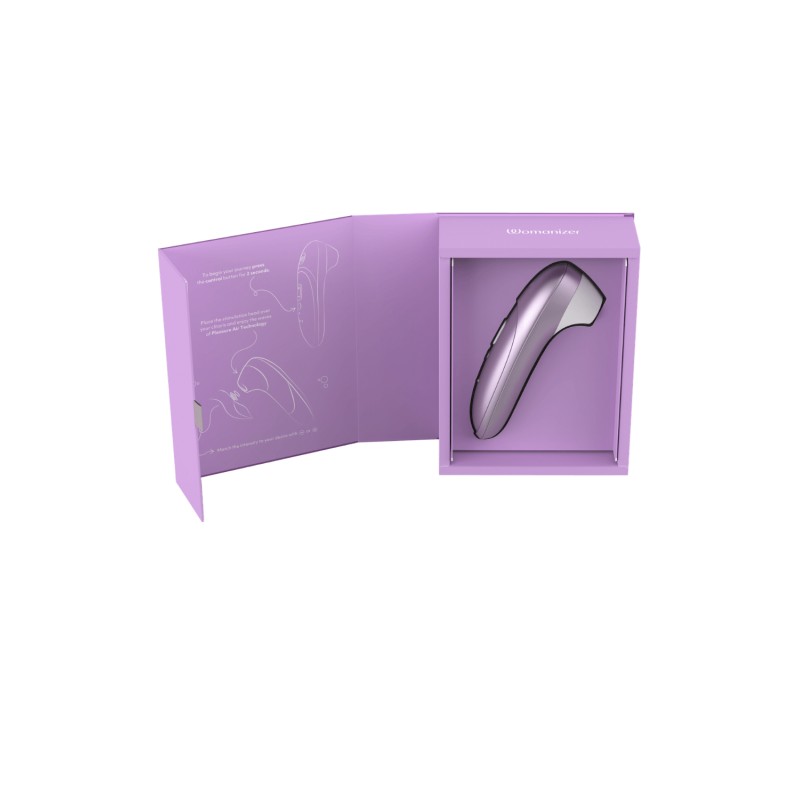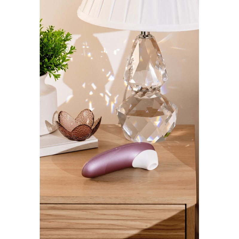 Ce stimulateur violet sans contact signé Womanizer se distingue par son format compact et sa technologie Pleasure Air.