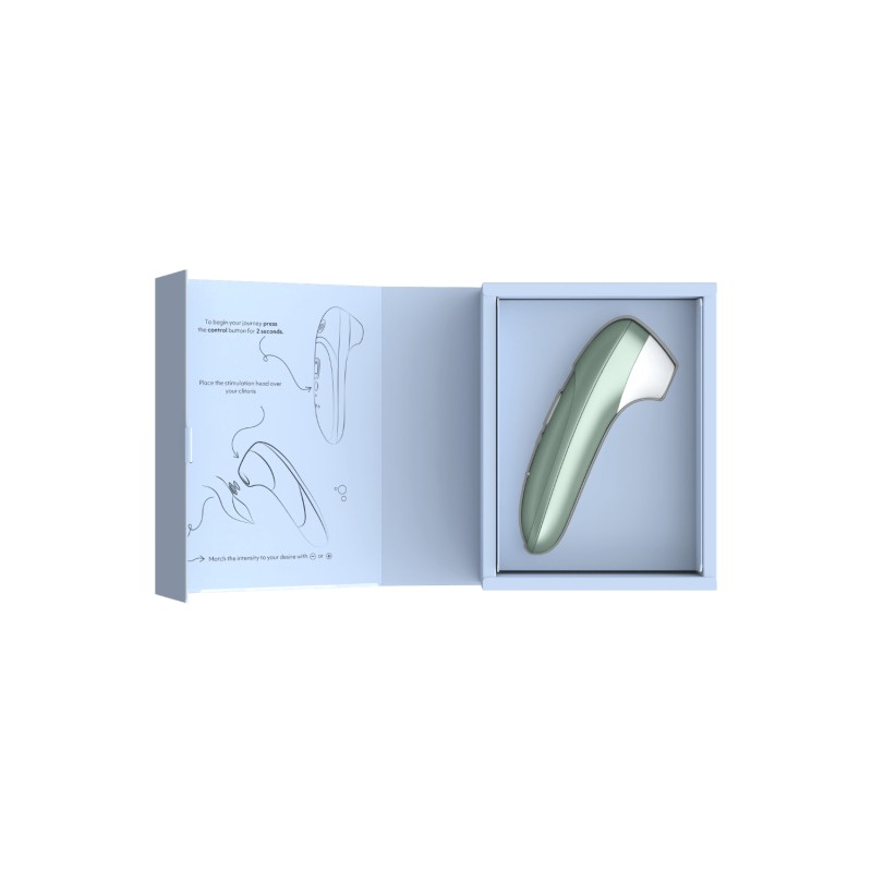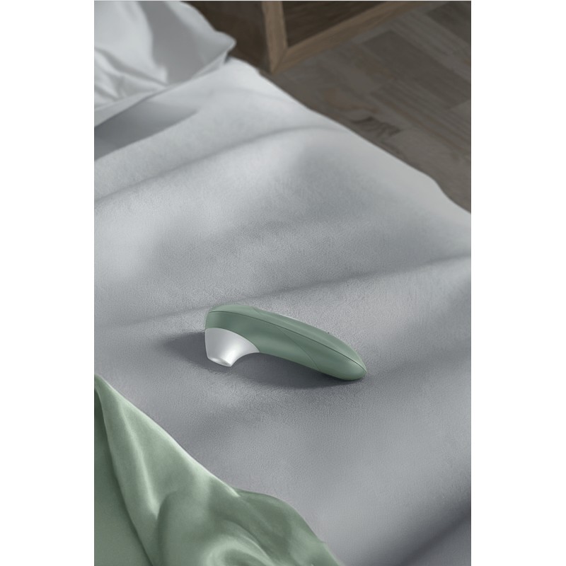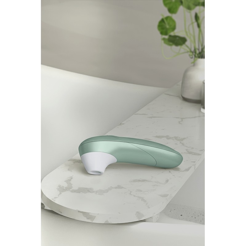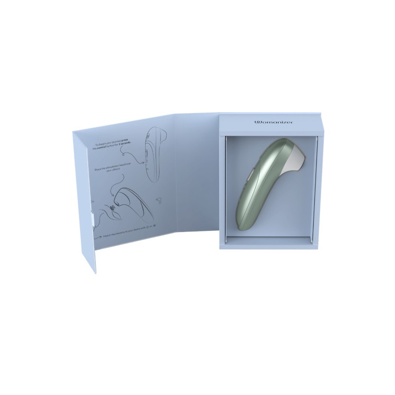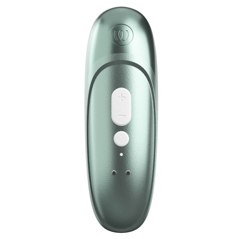 Ce stimulateur turquoise sans contact signé Womanizer se distingue par son format compact et sa technologie Pleasure Air.