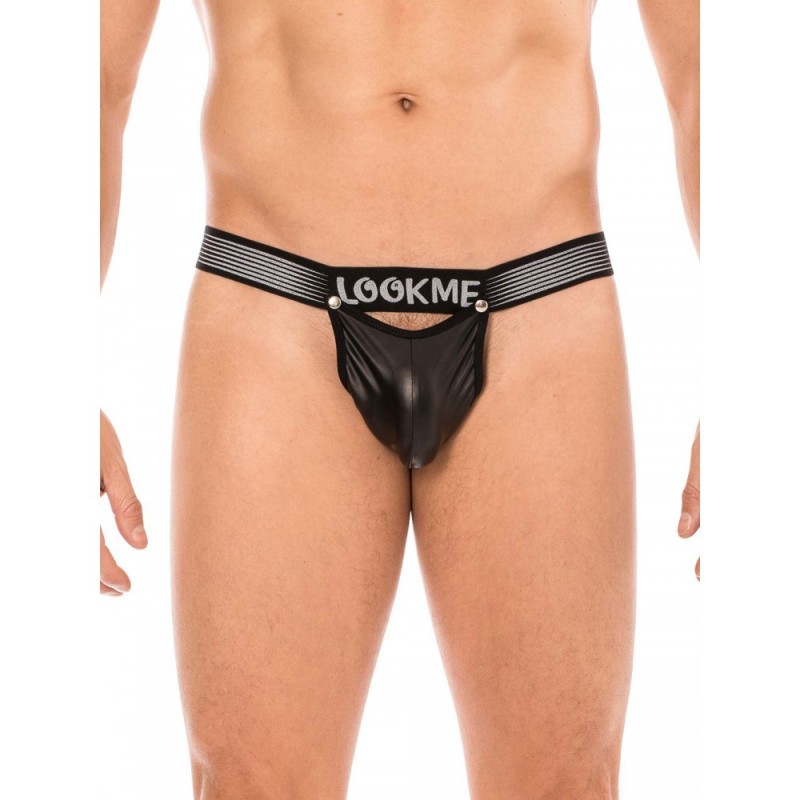 2 en 1 …A chaque jour son string…2 strings en 1 ! Simili cuir noir opaque ou à trou…en fonction de vos humeurs. Strings interchangeables sur une ceinture, impression LOOKME, gràce à des pressions. Composition : 92% polyester 8% spandex
