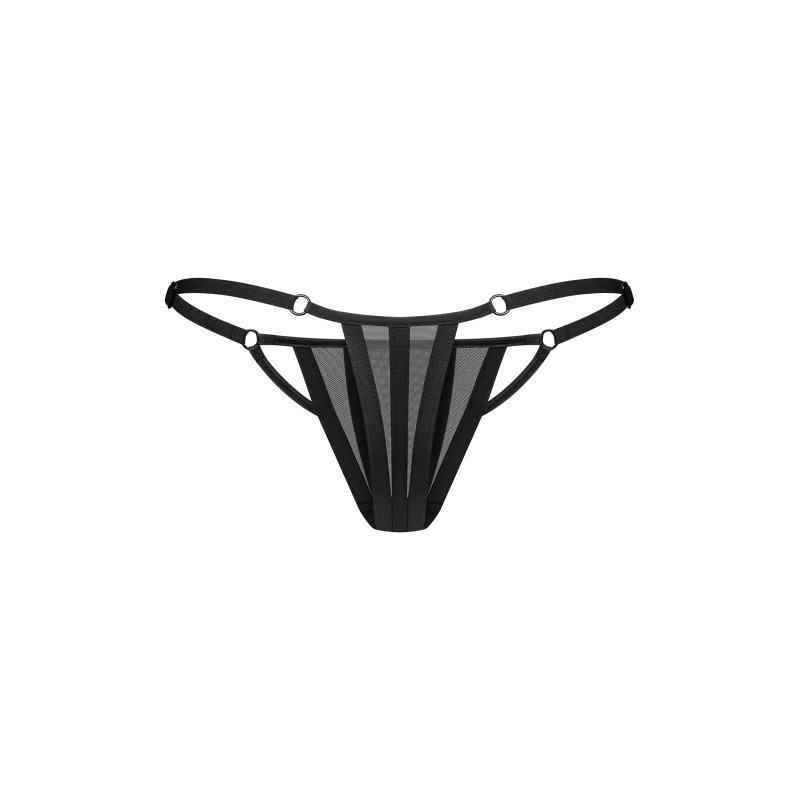 Le string Aurorium Black allie une transparence audacieuse à un design flatteur. La maille transparente et les coutures géométriques ajoutent une touche moderne, tandis que des sangles réglables sur le côté assurent un ajustement parfait. Le pendentif est un détail subtil mais frappant.