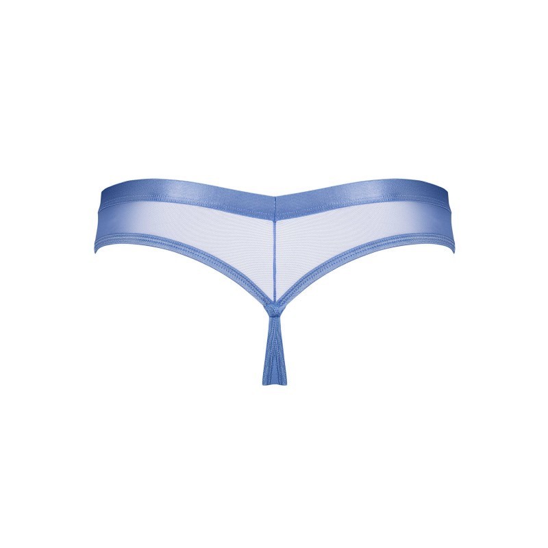 String bleu avec un design contemporain en forme de V à l’avant. Fabriqué à partir d’une combinaison de maille subtilement transparente de haute qualité et de garniture élastique, il assure un ajustement impeccable qui accentue vos courbes sans effort.