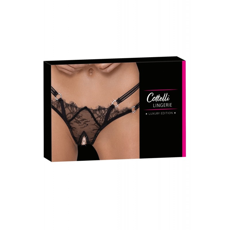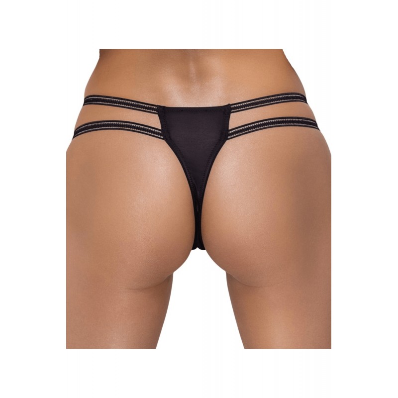 À l’avant, quatre anneaux ornés de strass irisés apportent une touche lumineuse et glamour. À l’arrière, un empiècement stretch assure une coupe parfaitement ajustée, agréable à porter.