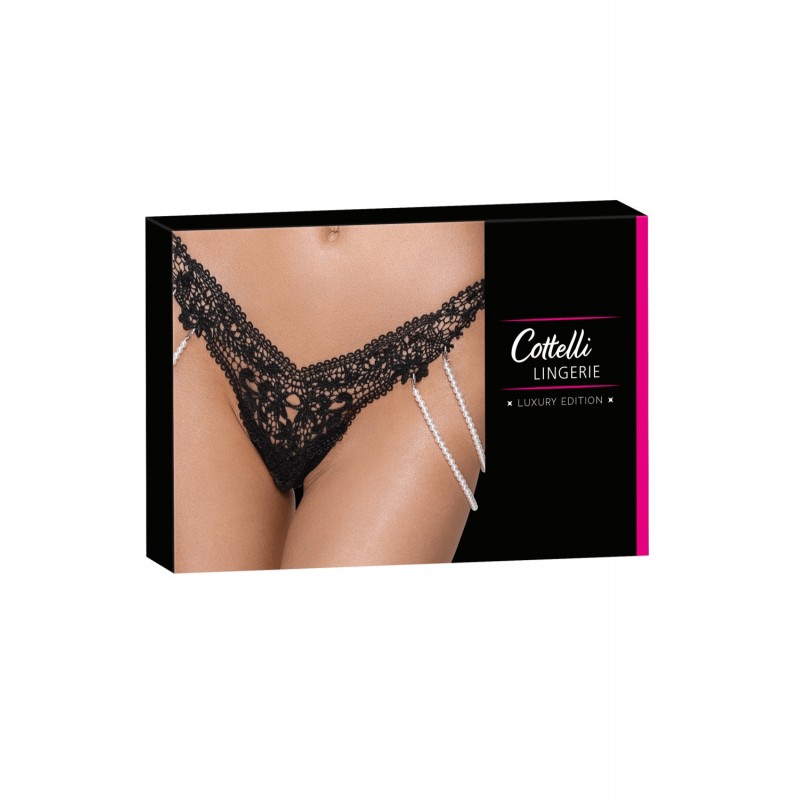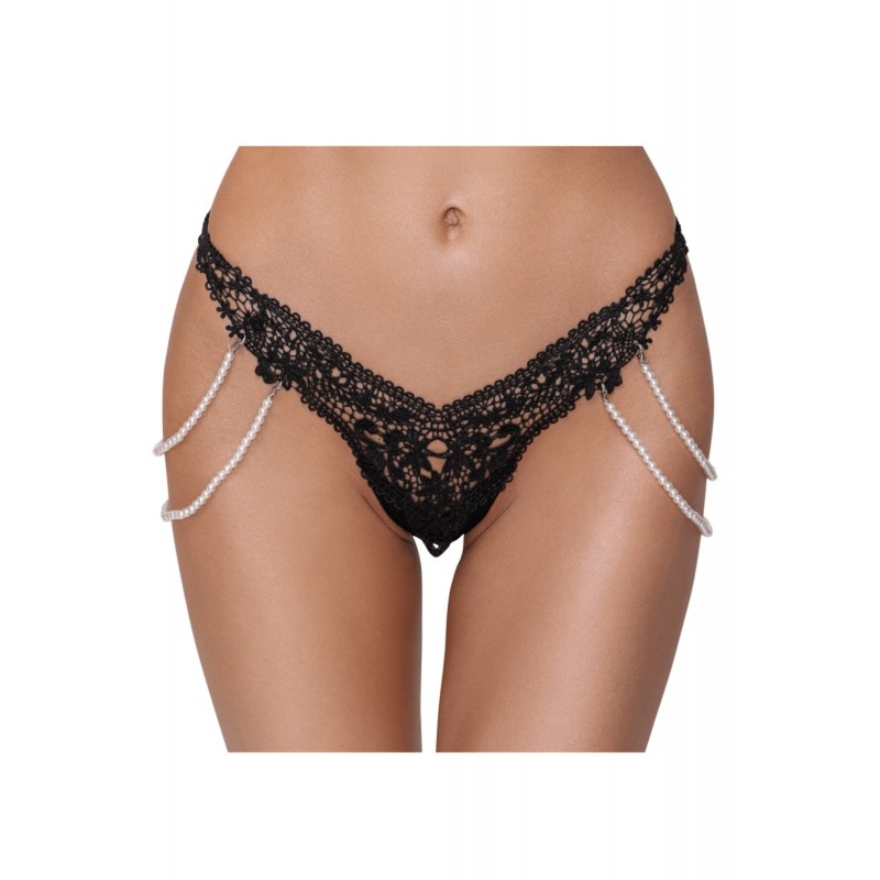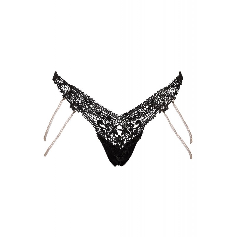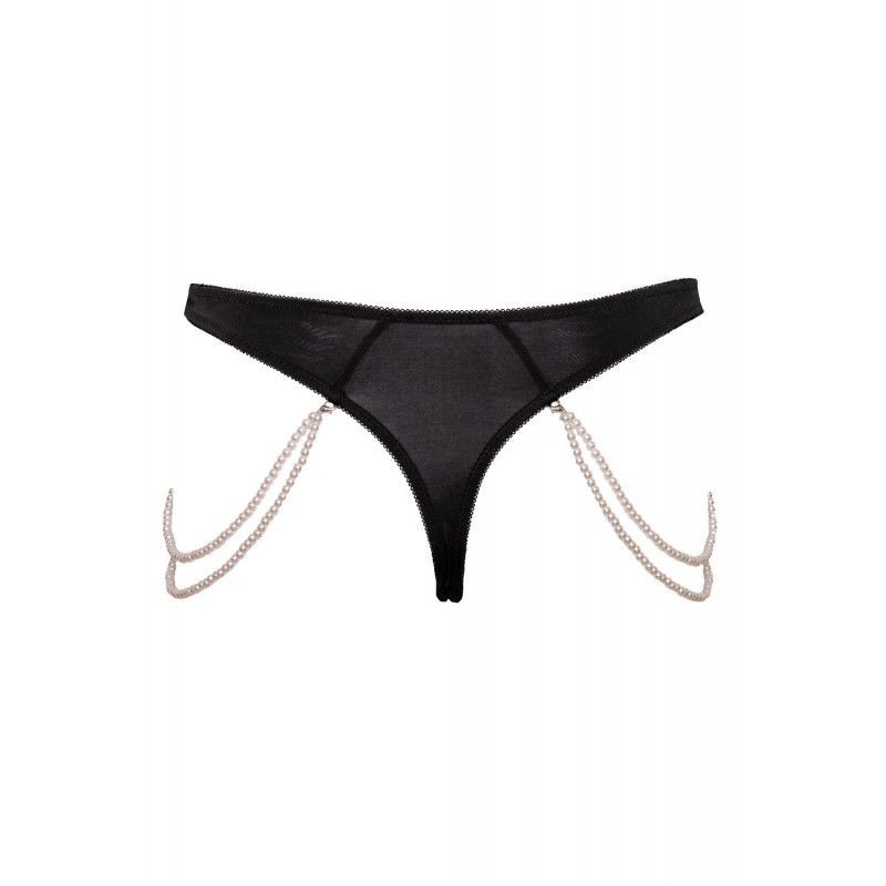 Sur les côtés, deux chaînes élastiques ornées de perles apportent une touche bijou subtile et sensuelle.