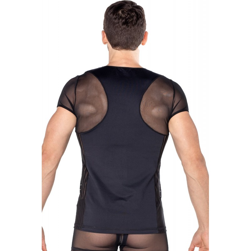 T-shirt noir de la collection Biker, Mélange subtil de tissu opaque et d'une fine résille transparente. La collection LOOKME vous offre une coupe design avec T-shirt noir Biker très confortable.